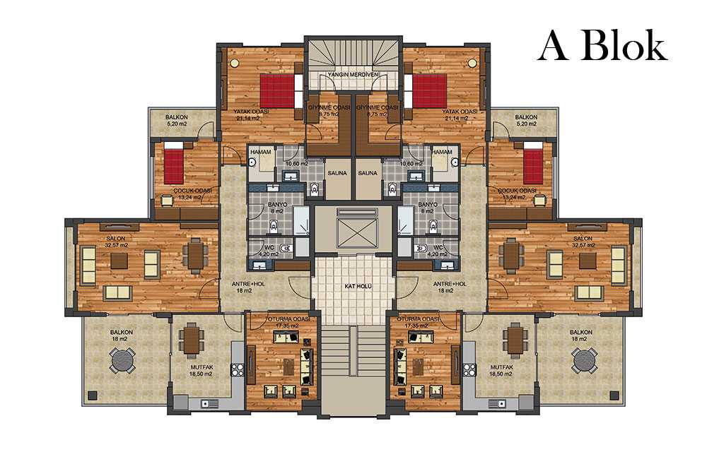 Her dairede bir türk hamamı ve bir sauna. Akif Gültekin İnşaat