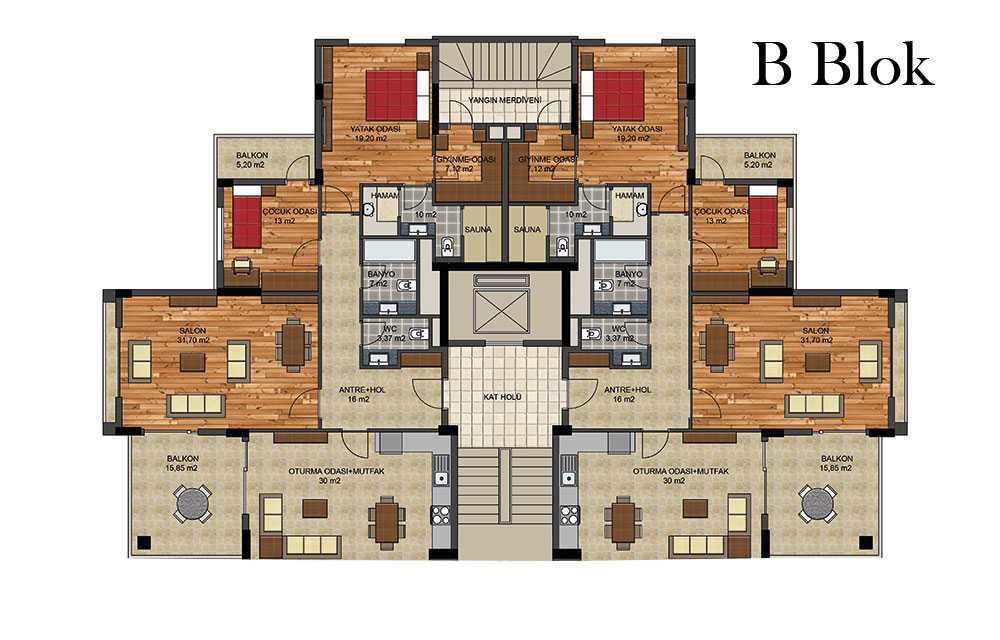 Her dairede bir türk hamamı ve bir sauna. Akif Gültekin İnşaat